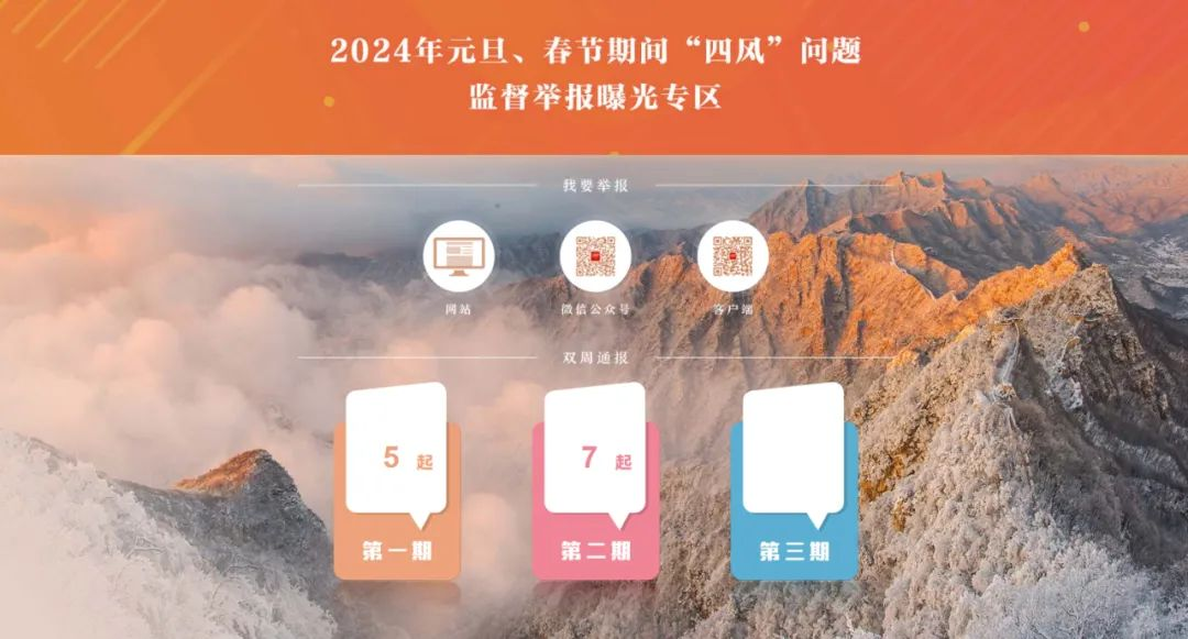 春節(jié)臨近,“四風(fēng)”問(wèn)題易發(fā)多發(fā)。中央紀(jì)委國(guó)家監(jiān)委網(wǎng)站推出“2024年元旦、春節(jié)期間‘四風(fēng)’問(wèn)題監(jiān)督舉報(bào)曝光專區(qū)”,加大典型案例通報(bào)曝光力度。紀(jì)檢監(jiān)察機(jī)關(guān)強(qiáng)化監(jiān)督執(zhí)紀(jì),對(duì)包括違規(guī)吃喝在內(nèi)的“四風(fēng)”頑疾嚴(yán)查快處,公開(kāi)通報(bào)典型案例,形成有力震懾,營(yíng)造風(fēng)清氣正的節(jié)日氛圍。